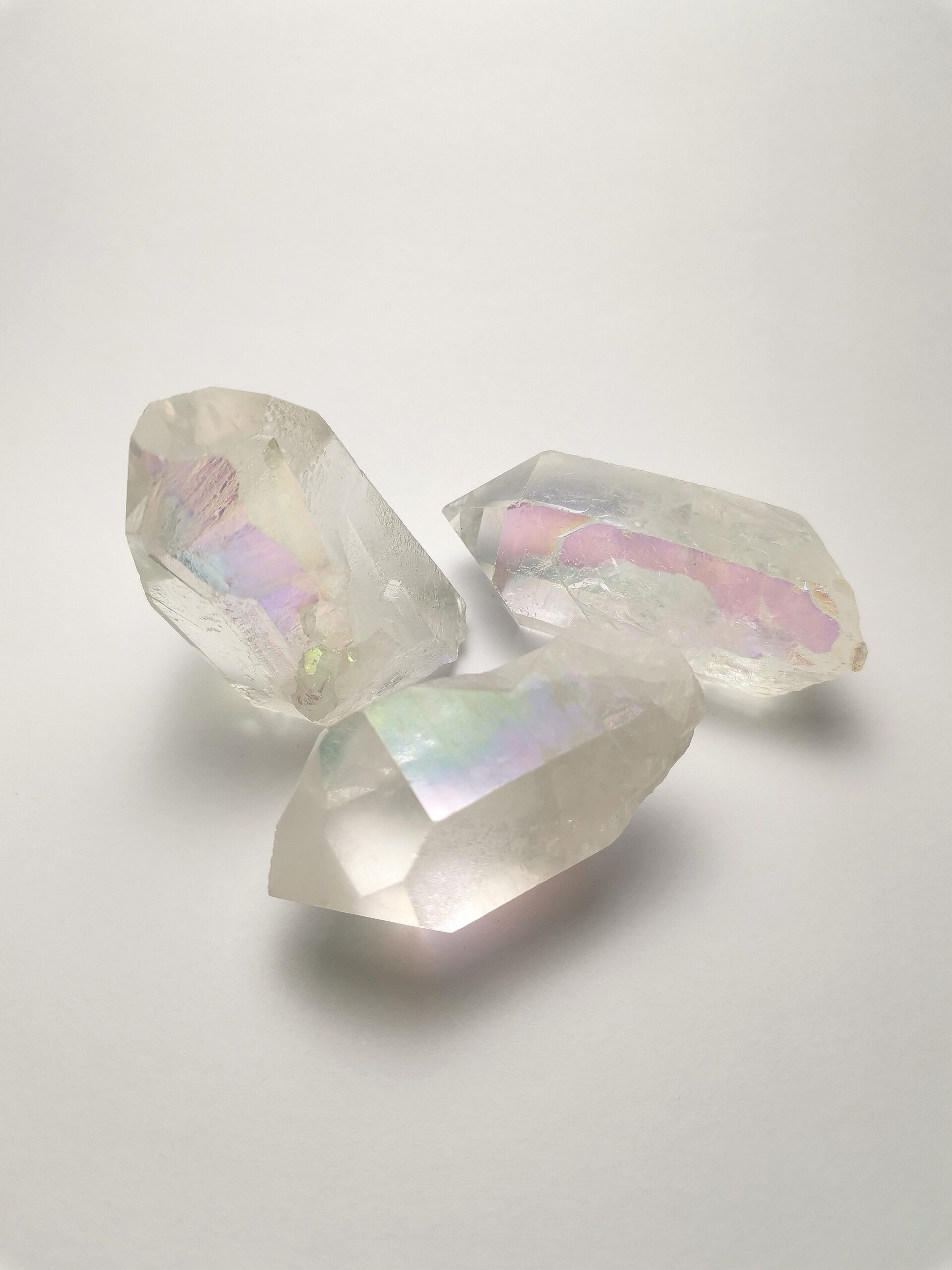 Angel Aura, znan tudi kot Aura Lite, je ime za Quartz kristal, ki je podvržen ekstremni vročini (1600 * F) in je nato prevlečen s posebno mešanico kovin, kot so platina, zlato in srebro. Ti minerali ustvarjajo mavričen sijaj in povečujejo čisto moč tega kamna.