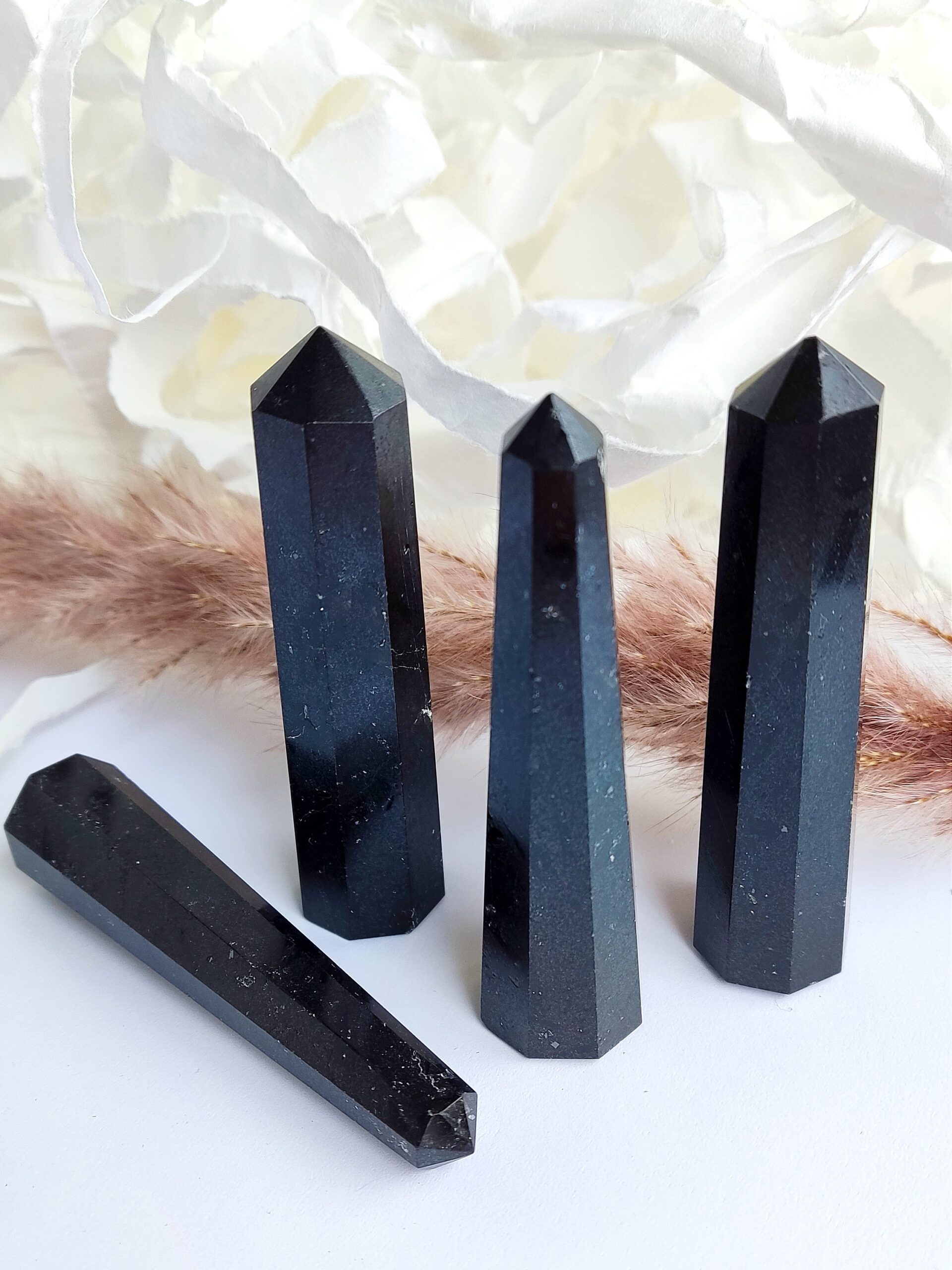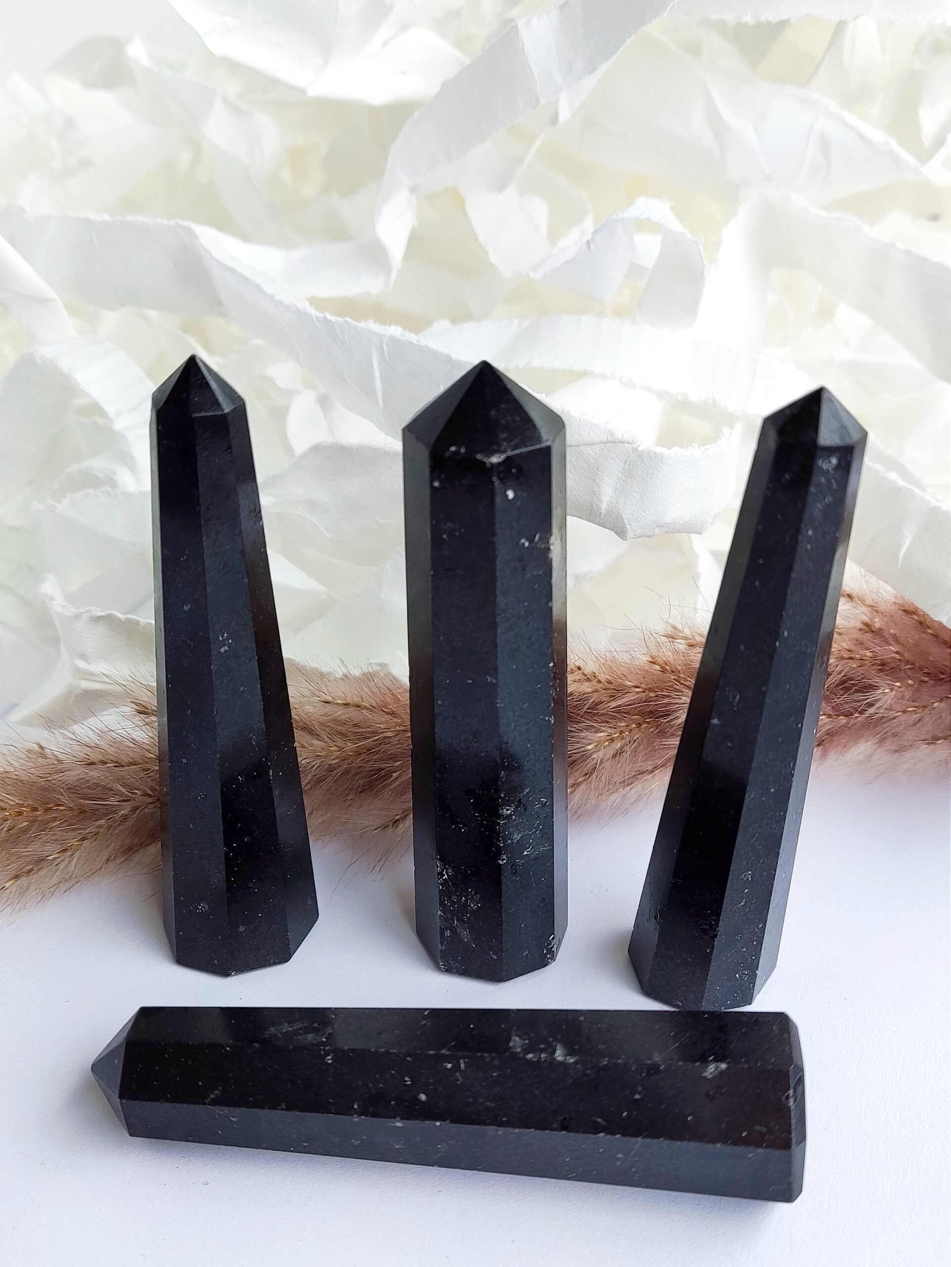 Starodavni čarovniki so se zanašali na črni Turmalin, znan kot Schorl, da bi jih zaščitil pred zemeljskimi demoni, ko so urokovali. Danes je ta kamen še vedno cenjen kot glavni talisman zaščite, psihični ščit, ki odklanja in odganja negativne energije, entitete ali uničevalne sile. Varuje pred sevanjem in onesnaževalci okolja ter je zelo uporaben pri prečiščevanju in nevtralizaciji lastnih negativnih misli in notranjih konfliktov ter jih spreminja v pozitivno, uporabno energijo. Obelisk je močna oblika kristala, imenovana tudi svetlobni steber, in je znana kot simbol vstajenja. Obelisk, postavljen v bivalni ali delovni prostor, izboljša feng shui tega prostora. Obelisk koncentrira energijo kristala in seva od zgoraj. Manjše obeliske lahko držimo kot palico ali pa jih uporabimo za usmerjanje energije v določen del telesa, sobe, delovnega prostora ali kamor koli želimo.