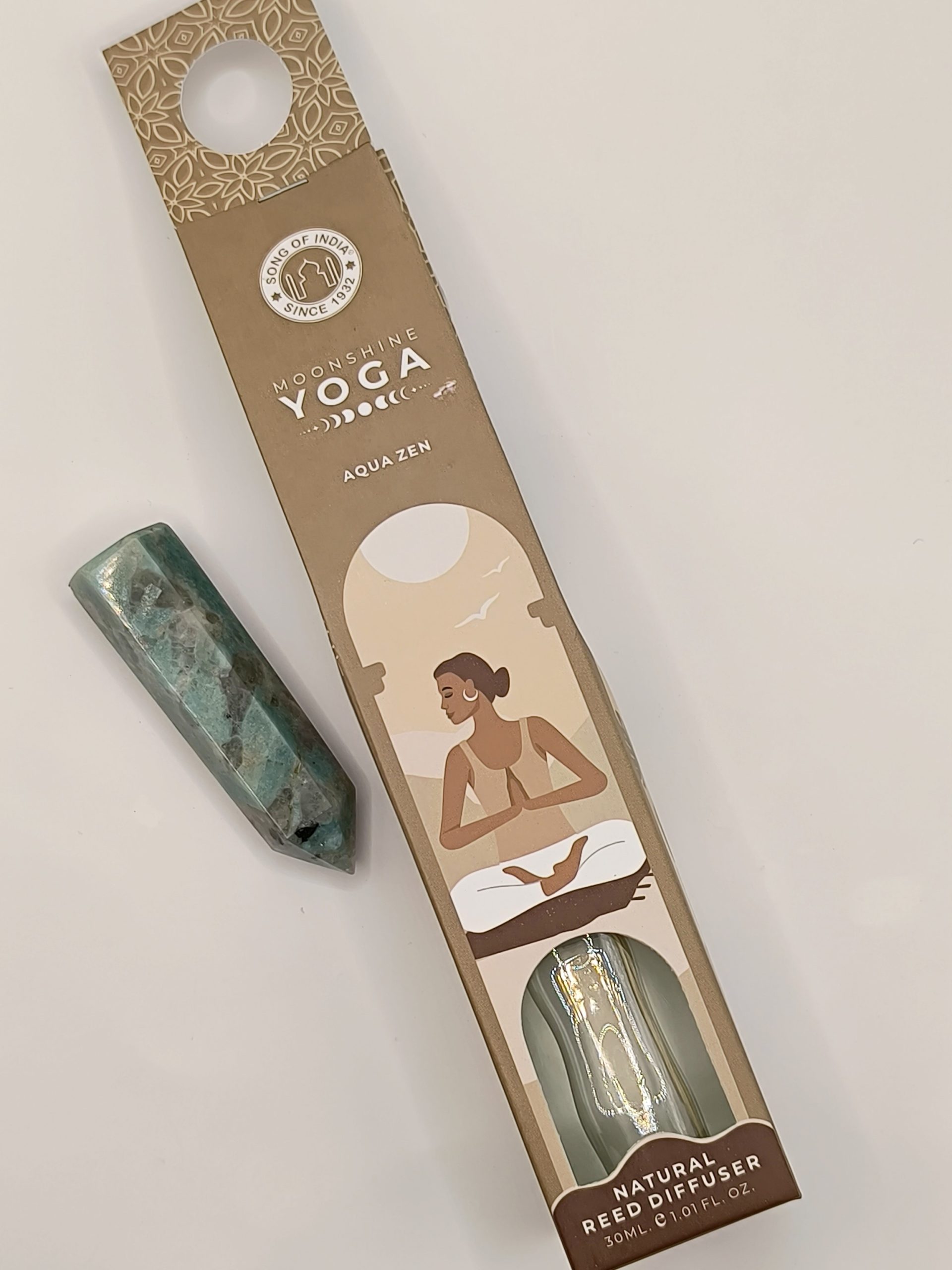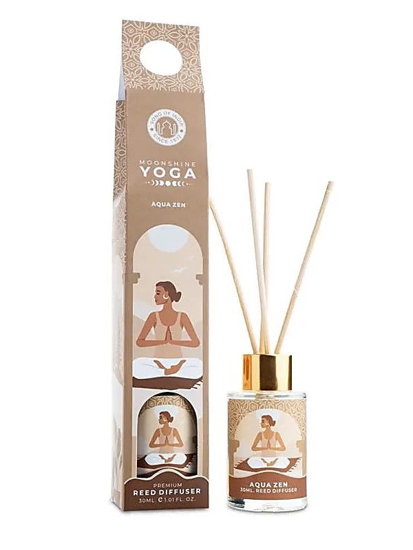30 ml tekočine v stekleni flaški, z difuzorskimi paličkami iz ratana. Svež vonj Aqua Zen z vodnim navdihom. Dišava s počasnim sproščanjem za dolgotrajen učinek. Dekorativna steklenička z ilustracijo na temo joge.