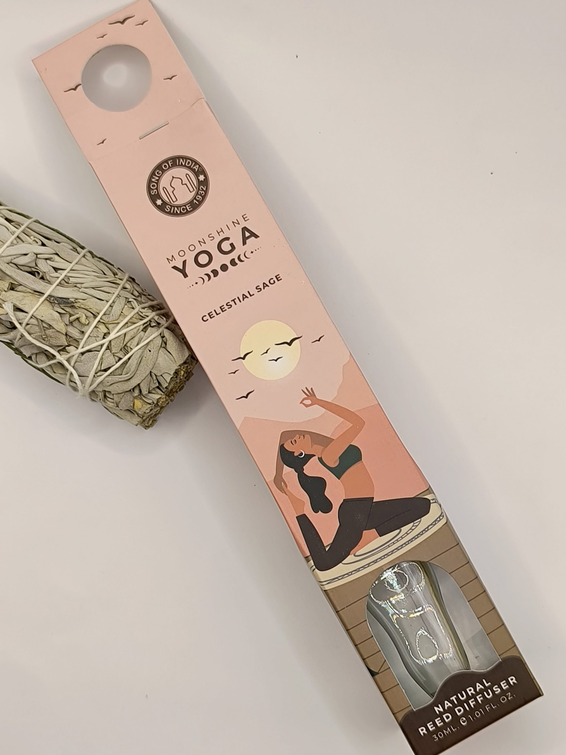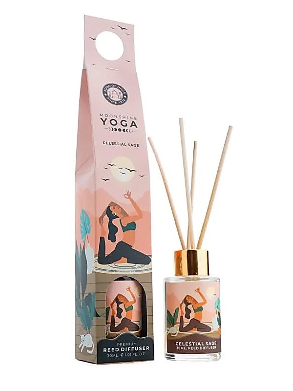 Zeliščna mešanica, ki jo je navdihnila čistilna in zaščitna esenca žajblja, je zasnovana za ustvarjanje svežega in čistilnega vzdušja. Difuzor oddaja svež, zeliščni vonj, ki spodbuja jasnost in sprostitev. Kolekcija Moonshine Yoga zajema bistvo mirne vadbe, saj ponuja osvežilne mešanice in pomirjujoče arome.