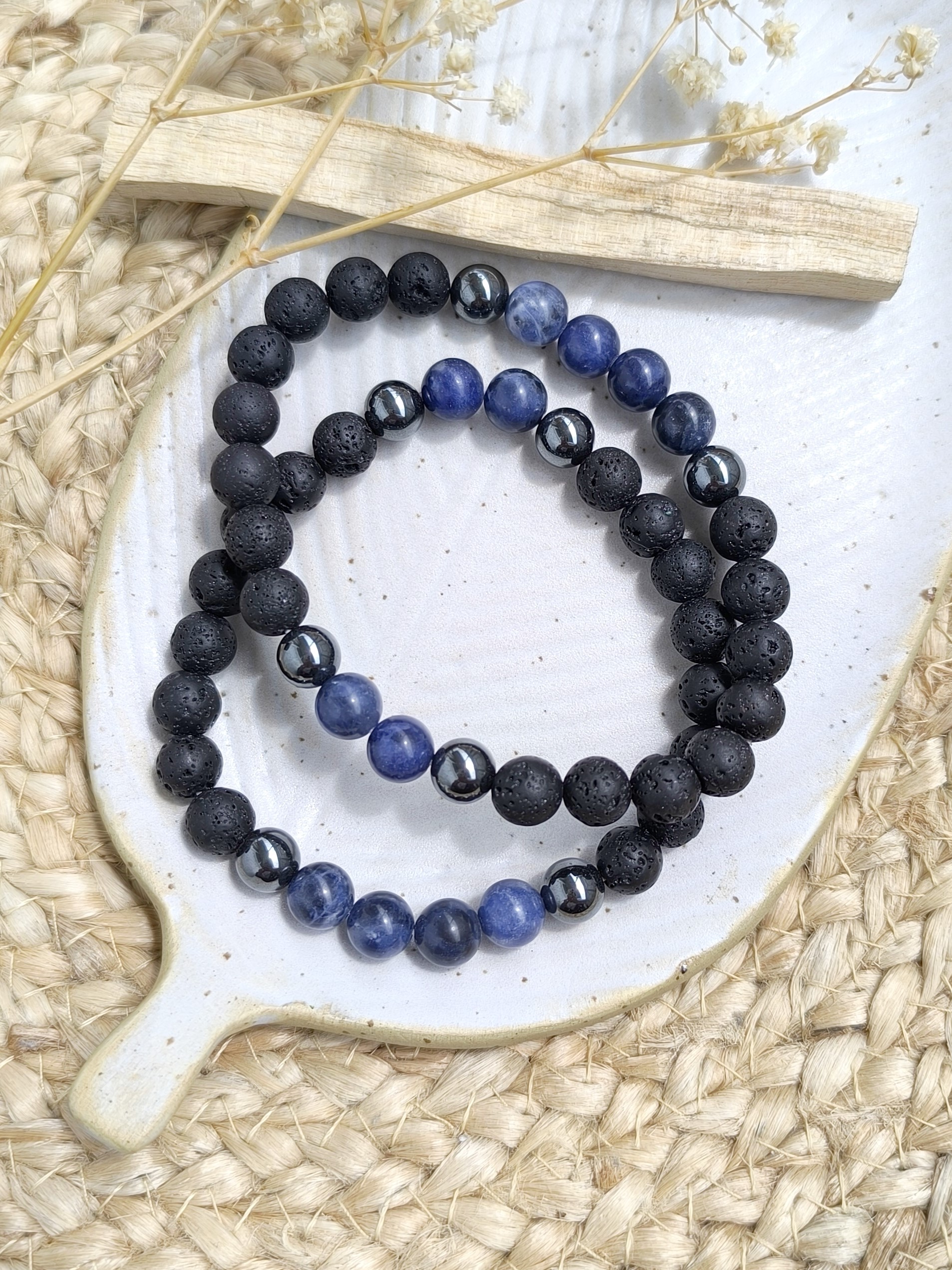 Sodalit je znan po spodbujanju jasnosti, intuicije in čustvenega ravnovesja, medtem ko je lava cenjena zaradi svojih ozemljitvenih in pomirjujočih lastnosti. Zdravilne lastnosti kristalov Hematita dajejo občutek prizemljenosti in stabilnosti.