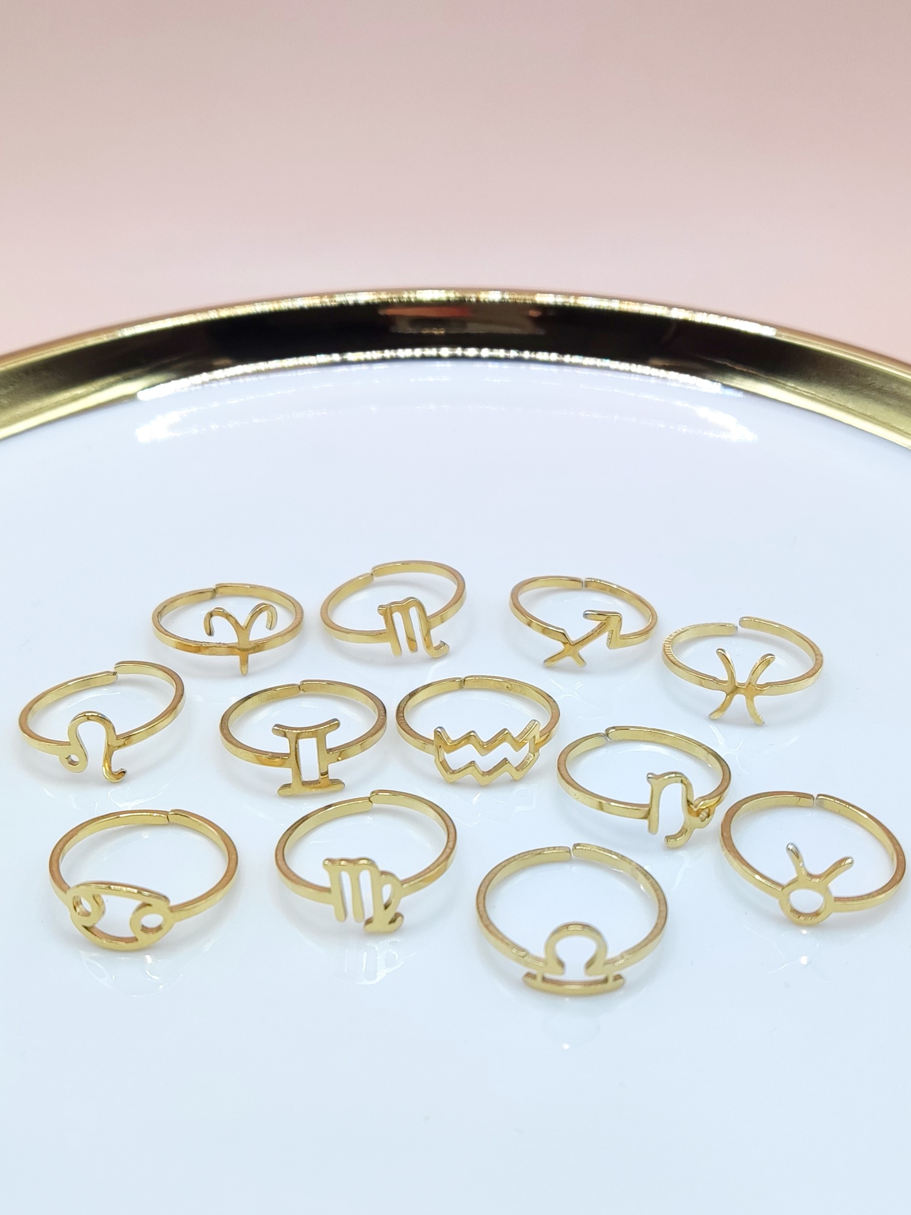 Vsak od naših ročno izdelanih, pozlačenih, zodiakalnih prstanov spremlja različno astrološko znamenje, ki so odličen opomnik razumevanja in strpnosti do različnosti med posameznimi astrološkimi znamenji. Ta prstan je najlepši način za predstavljanje vašega sončnega znamenja in je seveda tudi odlično darilo.