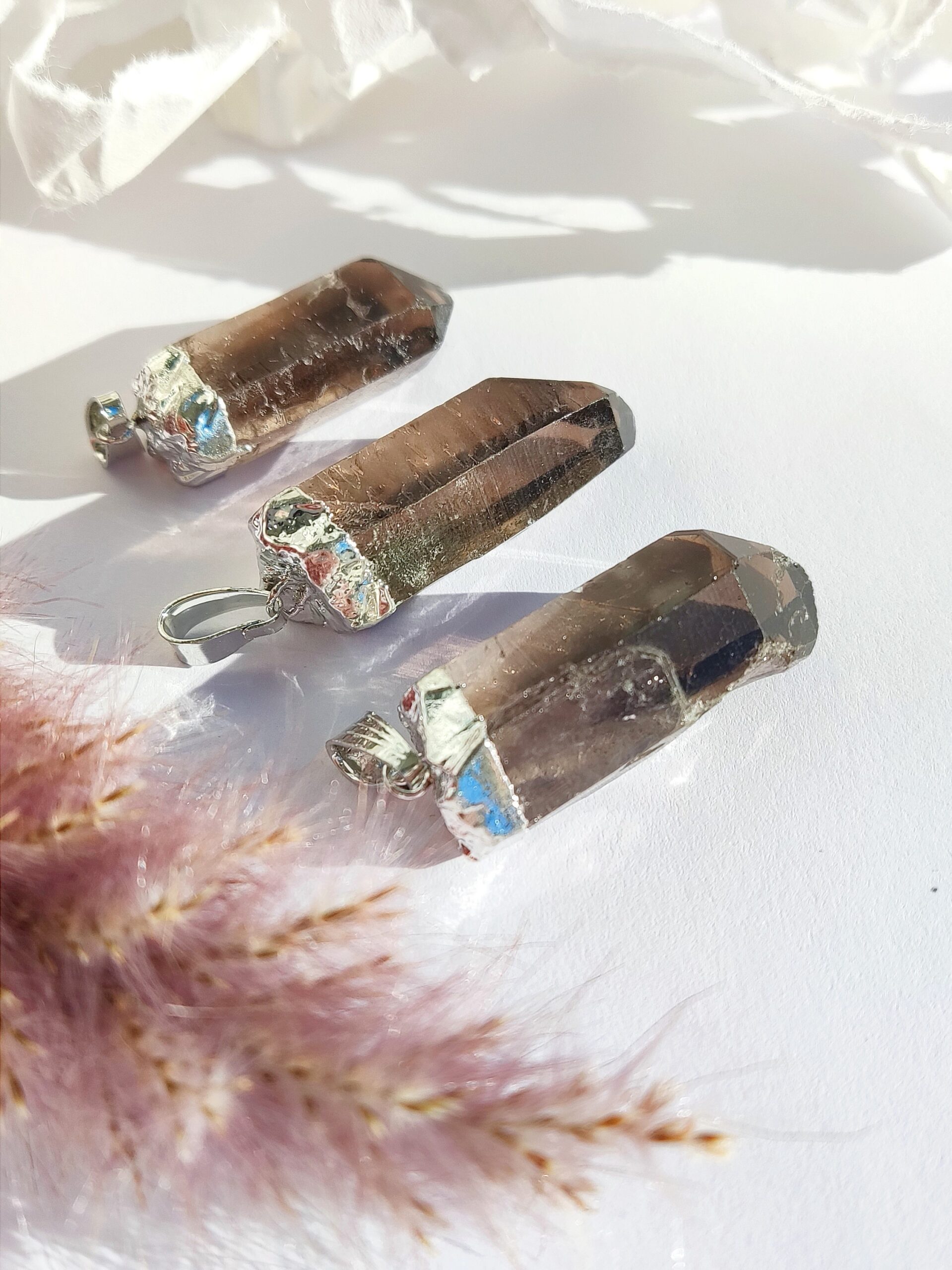 Srebrnemu dimu podobna barva je posledica naravnega obsevanja te sorte kremenovega – silicijevega dioksida. Njegove močne ozemljitvene lastnosti izhajajo iz dejstva, da je sestavljen iz vseh najbogatejših darov na zemlji – blata, gline ter zemlje in pepela, ki se združijo v kristal Smoky Quartz. Je odlična podpora za premagovanje strahov, ki nas držijo na mestu, in za spodbujanje, da se odrečemo situacijam, ki ne služijo našemu višjemu namenu. Vsi vemo, da imata strah in tesnoba neposreden vpliv na telo, Smoky Quartz pa zagotavlja, da teh napetostih ni več, da je naš spanec miren in bogat ter hkrati daje fizičnim celicam čas, da se pozdravijo.