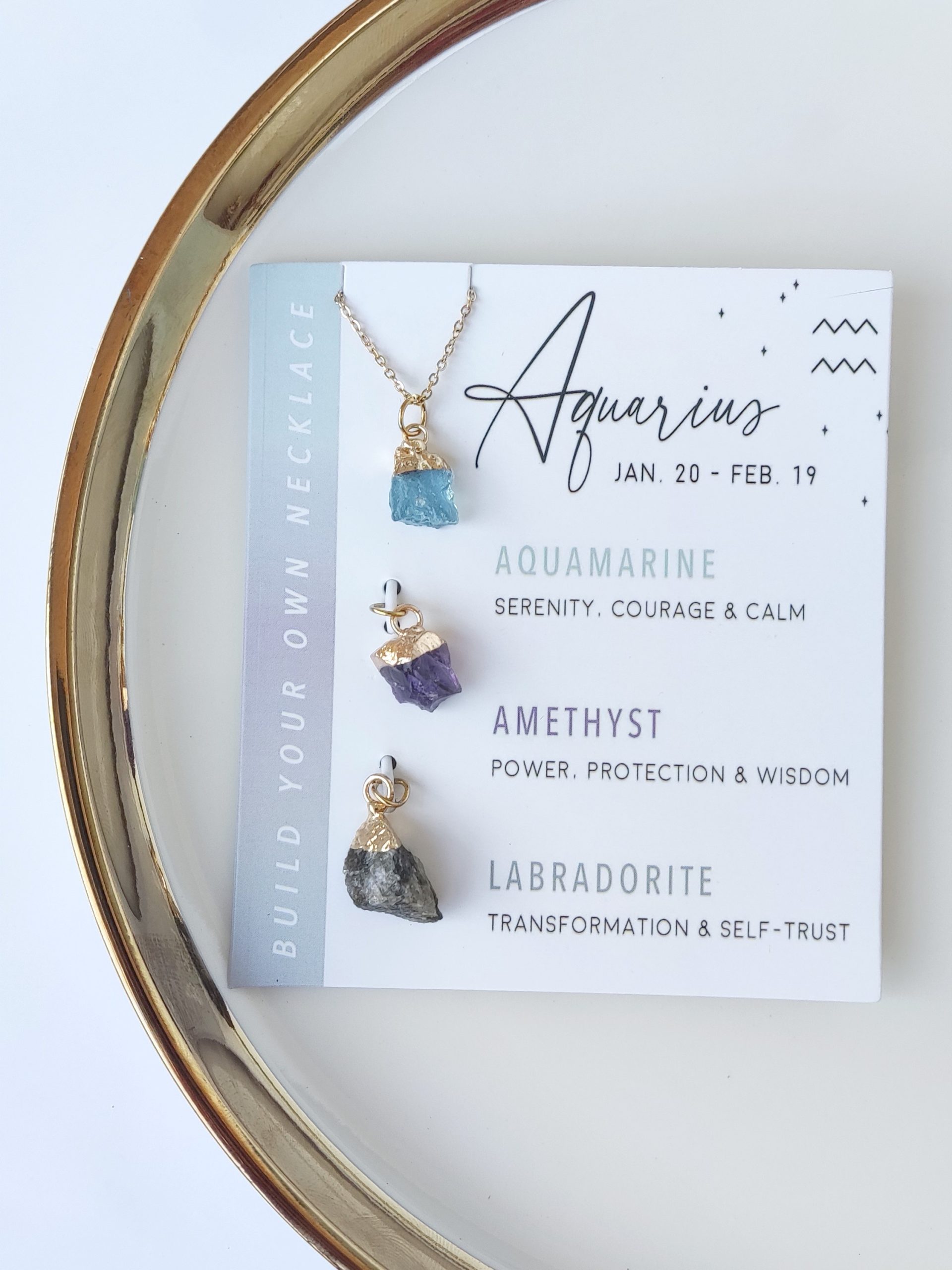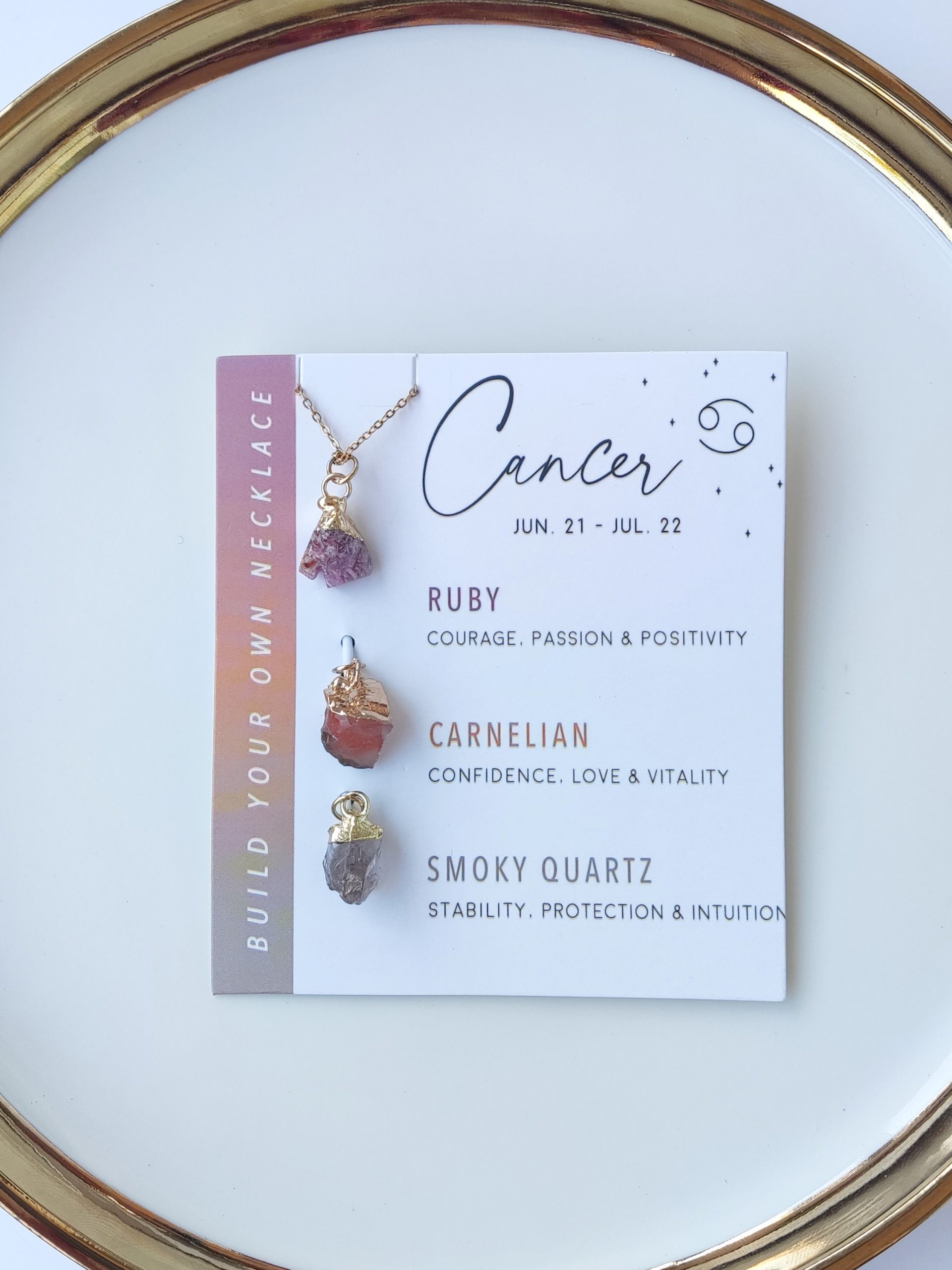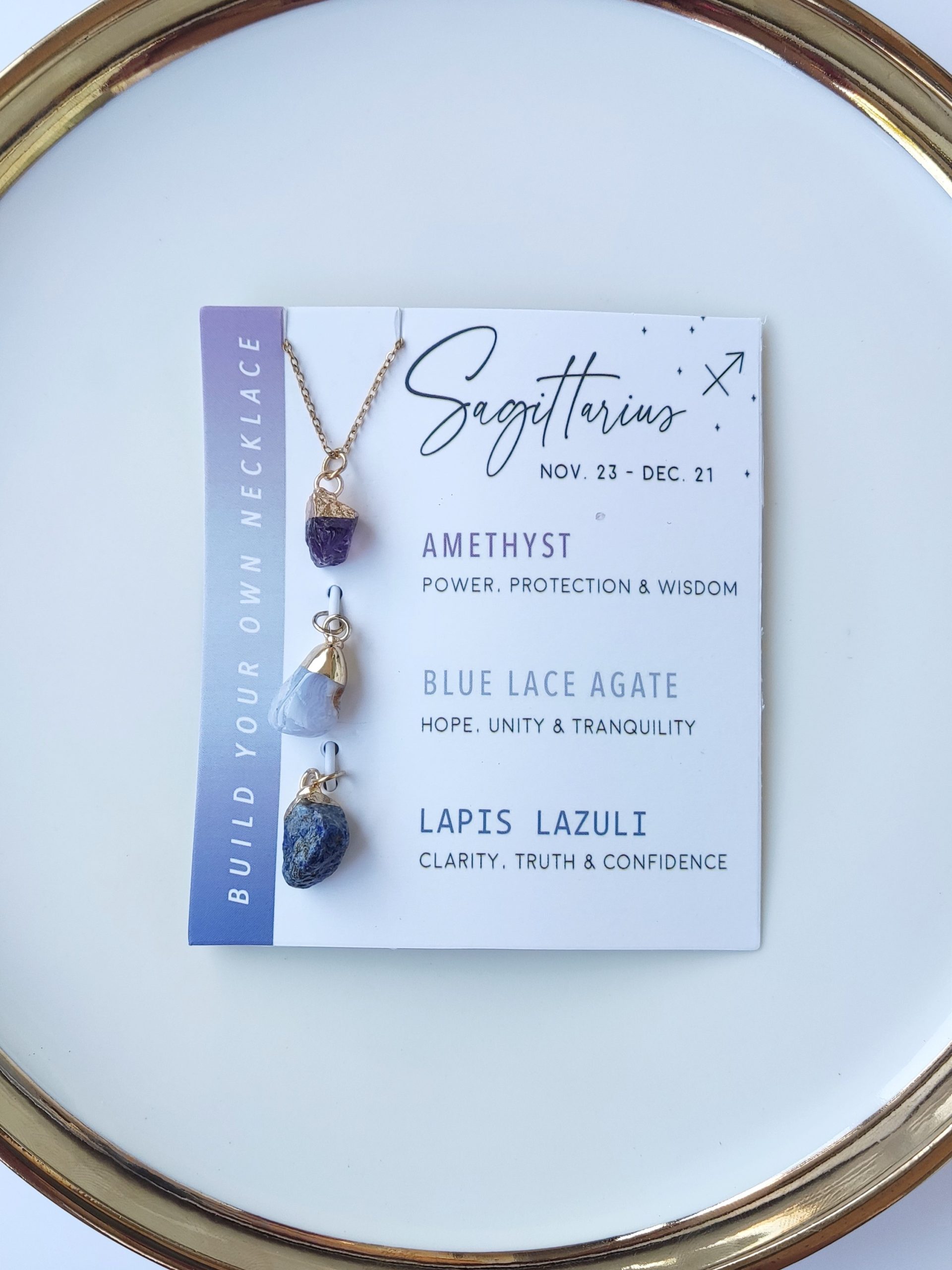 Komplet z verižico in kristalnimi obeski vsebuje tudi ujemajoče se kartice, ki podrobno opisujejo posamezne lastnosti vsakega dragega kamna (v ang. jeziku – slovenski prevod je v opisu posameznega znamenja).