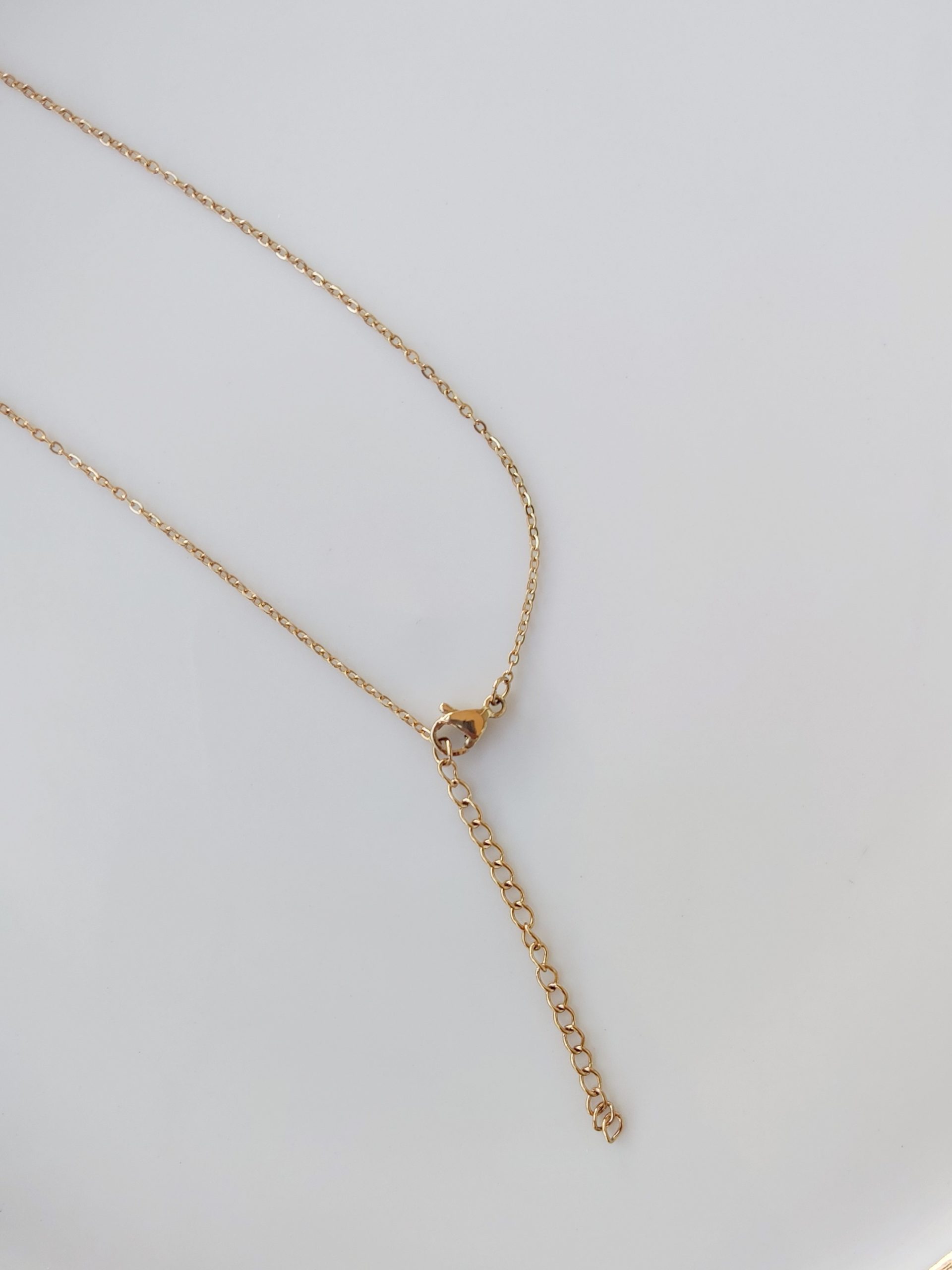 Verižica je iz nerjavečega jekla, pozlačena z 18k zlatom in je dolga 45cm. Vrhovi kristalov so prevlečeni z zlatim galvaniziranim bakrom.